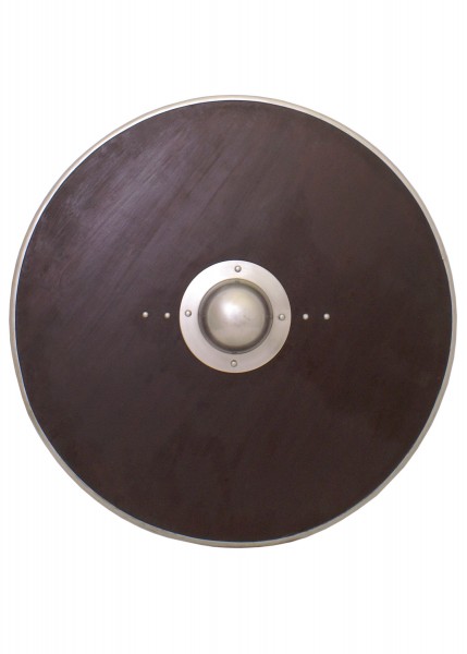 This is a battle-ready wooden round shield with shield boss and steel framing. While reconstructions are often too small, this one finally is up to the standard of the originals. A sturdy, leather-wrapped handle is riveted to the back of the shield.